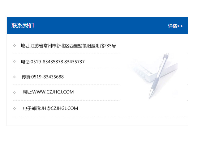 地址:常州市新北區友邦商務大廈1幢16、17層  電話:0519-85101652  傳真:0519-85112595  郵編:213022  網址:www_cz-jiayue_cn.yxjiahui.com  郵箱:xiajifengaa@163.com